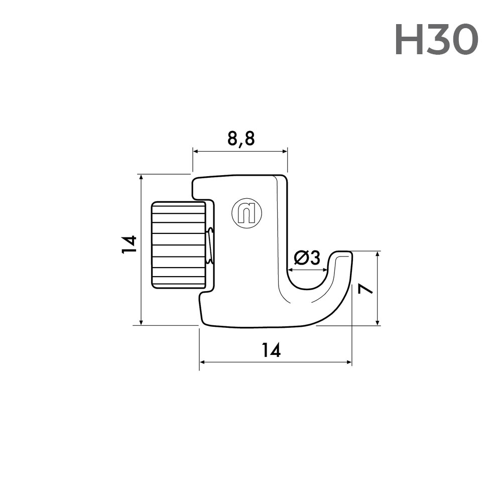 Meet the Newly H30, a meticulously crafted manual screw-locking hook designed specifically for 2mm perlon cords. These hooks are your go-to solution for effortlessly suspending lightweight items such as click frames and small artworks. Engineered for both durability and reliability, the Newly H30 hooks blend functionality with an elegant design that enhances any setting.