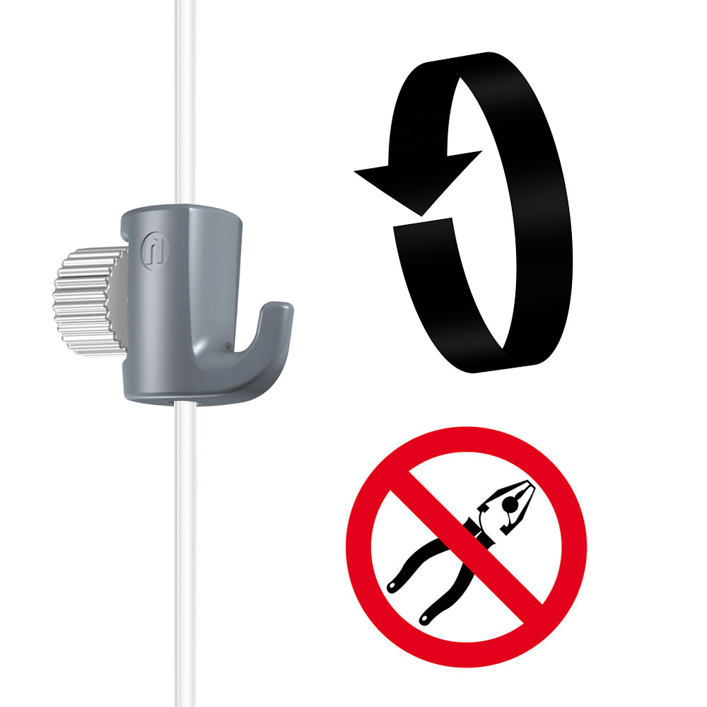 Enjoy the ease of installation and the assurance that comes with premium hanging solutions. We recommend against using this hook with steel wires, as excessive tightening of the screw may compromise the wire's integrity.