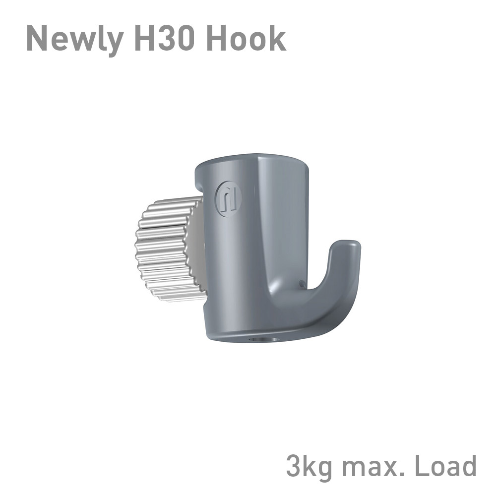Introducing the Newly H30, a carefully designed manual screw-locking hook made for 2mm perlon cords. These hooks are perfect for hanging lightweight items like click frames and small artworks.