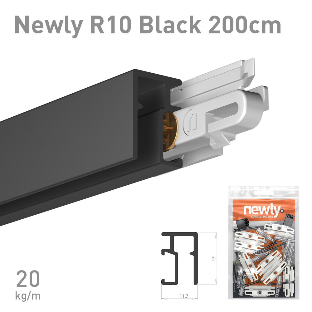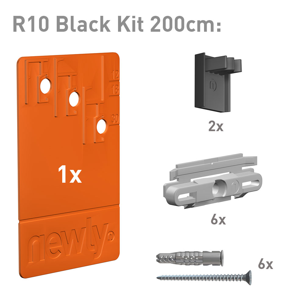 Newly R10 Black 200cm & Installation Kit - 20kg max. Load per Metre