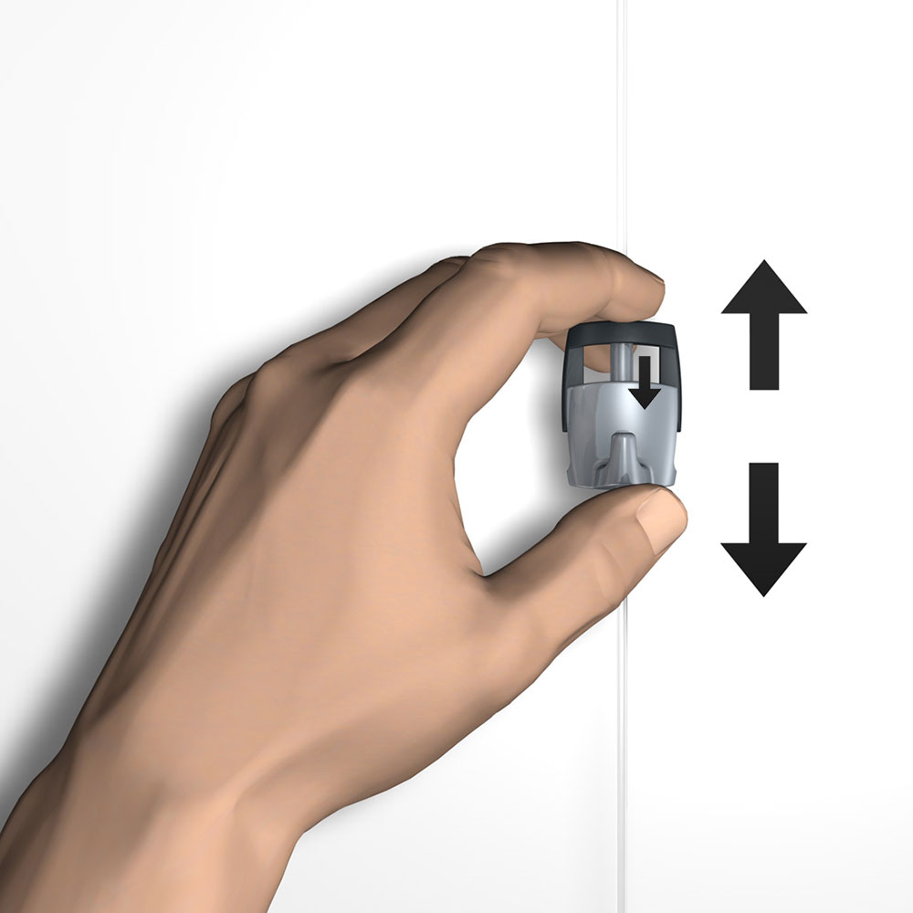 - Simply attach the hook to your cord and adjust its height by pressing the release button on top while holding the fastener’s housing.